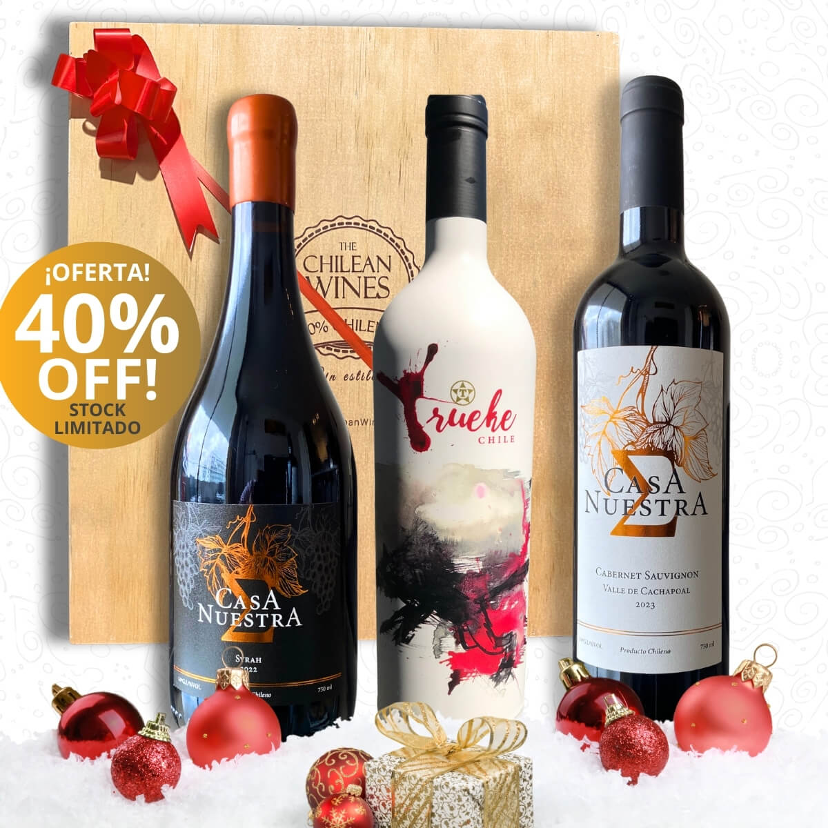 ¡Tripack Exclusivo! Vinos Boutique Casa Nuestra + Espumante Premium + Caja Estuche Regalo + Cinta de Regalo
