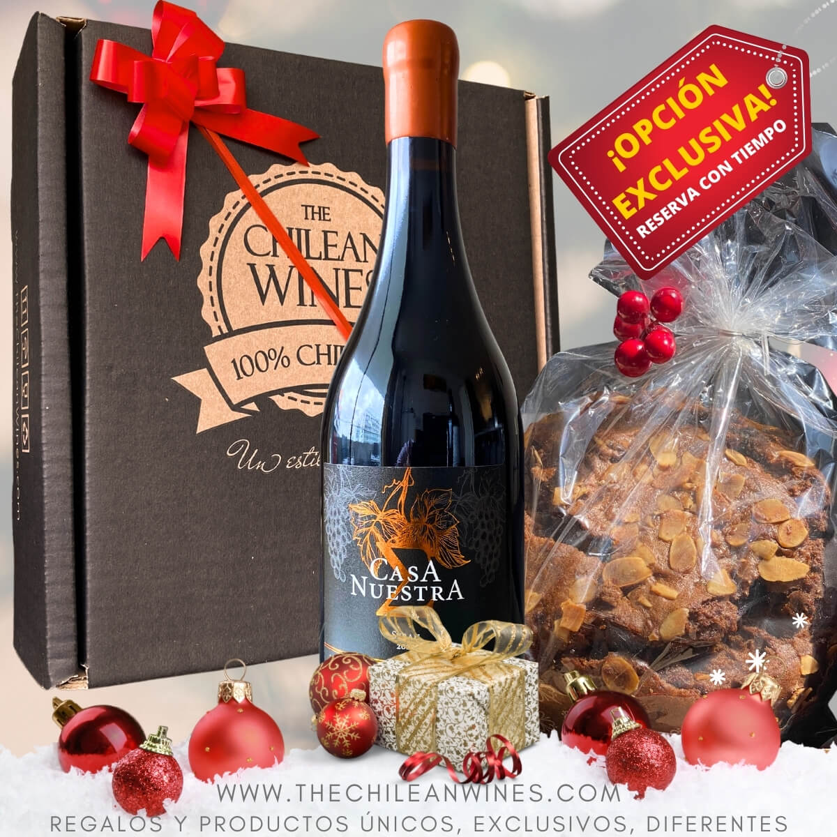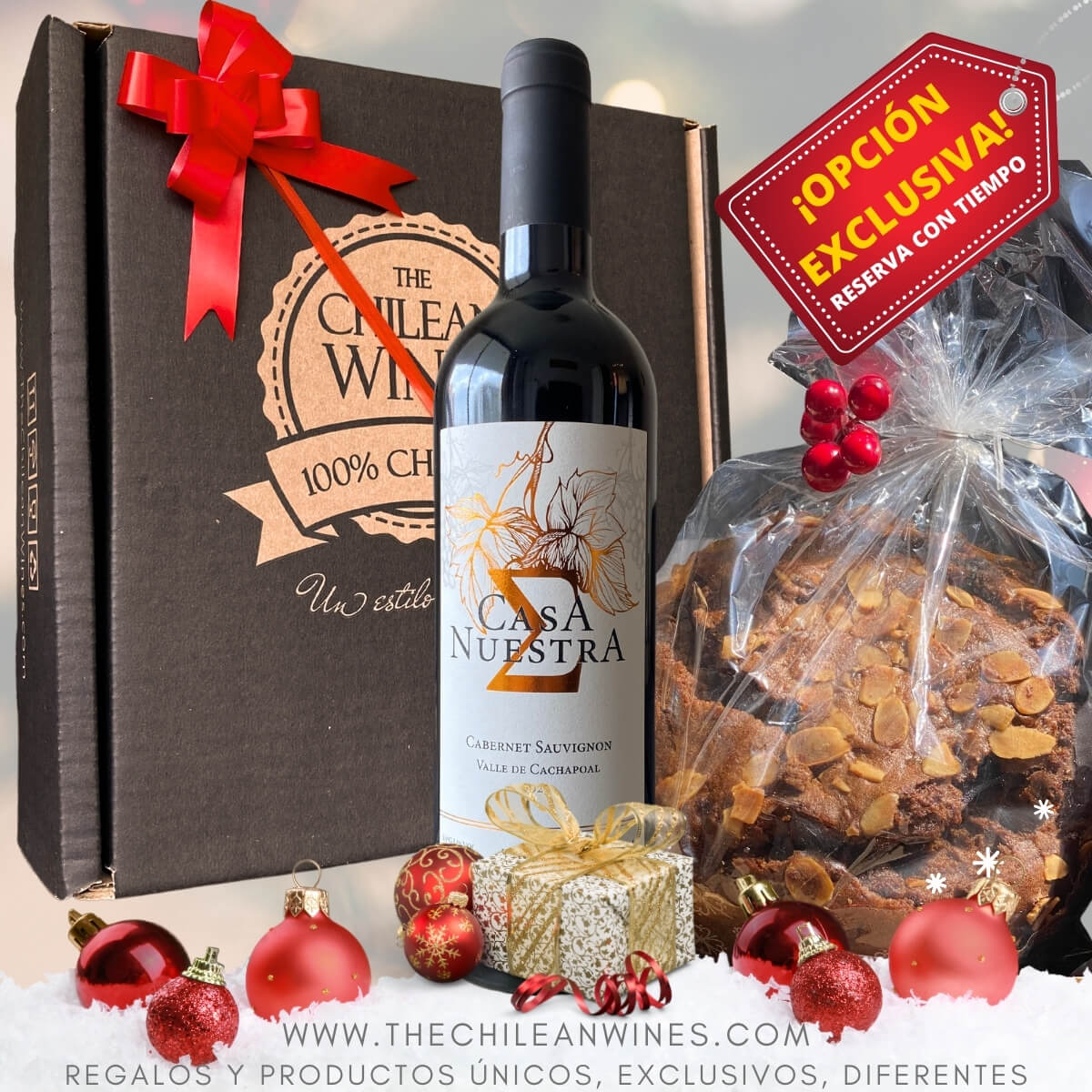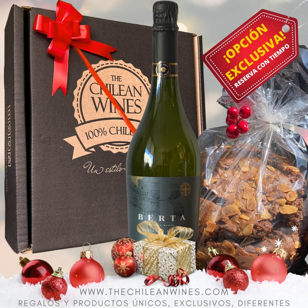 🎄¿ESPUMANTE O VINO?🎁 Caja Navideña ChileanWines con Espumante o Vino + Pan de Pascua frutos secos + Caja Estuche Premium + Cinta de Regalo