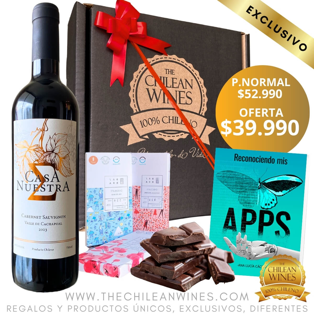Pack Regalo Chocolates + Libro Coaching + Syrah Gran Reserva Boutique CasaNuestra. Todo en Caja Estuche ChileanWines para Regalo